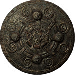 Medium shields are usually made of metal, range from 3'-4' in diameter, and