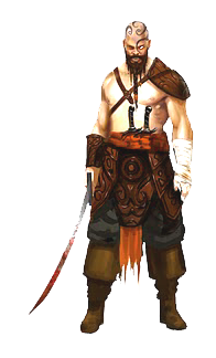Malvus is a rugged looking man, not one you'd expect to be a strategic mastermind. A rough, unkempt beard and a strong physical appearance overall, but his most "eye" catching characteristic is his milky glass left eye.