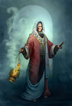 Personality: Velek is cruel and cunning. He is exceptionally smart and uses the guise of the temple to hide his true intentions. To another's face he seems honorable, yet strict, compassionate but unswerving. He will act in favor of Meyaden (Elspir's high priest) but only to his own advantages. His true self is well hidden and those that might accuse him of an evil minded nature may soon find themselves in prison as Velek has many underlings, spies and strong arms under his command.