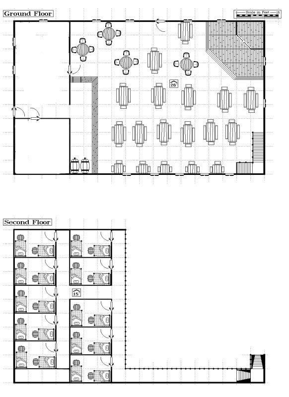 Once settled in (and someone please give me a final disposition as to who's staying in which room) Fraso leads the way down to the public room for dinner. The best cuts of meat are already gone, it being late, but the meal is passable. As you are finishing your meals, the night crowd starts arriving.