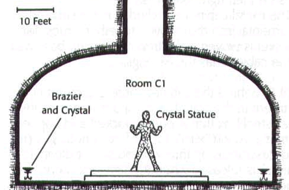 -Door lifts easily to reveal another 20x20 room with 20 ft pit and 20 ft ceiling (total 40 ft centered on floor of room1)