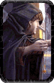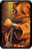 " Greetings!" Styln called out, his voice echoing hollowly across the space between them. Now he could see both individuals quite clearly. The one holding the flag was decked out in a plain but sturdy looking robes. No weapons were evident. At his neck hung the all too familiar sun symbol. Styln recognized him as a priest of the Danarii faith. Next to him a man stood in faded but clean robes. Heavy manacles at his wrists, feet and neck seemed to weigh him down. His features were obscured by the deep hood.