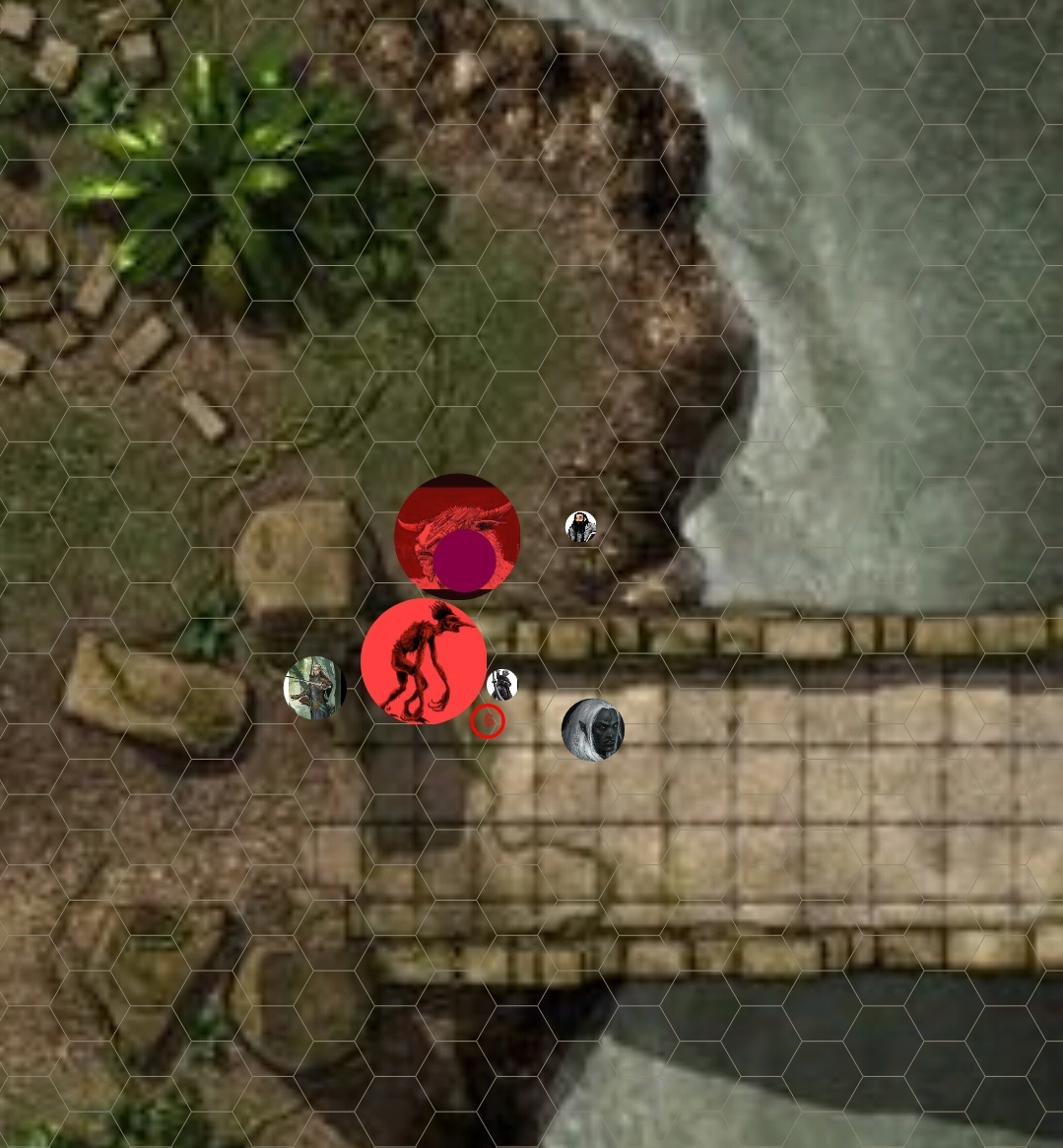 Jordek moves over to Bullock and lays a healing hand on him, reviving the minotaur. Likewise Fin moves carefully up behind Nocturno and adds a small healing of his own. The troll bellows furiously at the high elf and raises his gangly arms for a devastating blow but suddenly it collapses to the ground, clawing at its back. Linar stands behind the crumpled heap, slinging troll blood from his short sword. In a fury at the beast, Nocturno brings his sword down hard enough to decapitate the troll and strike a spark against the stone bridge beneath! He stands there panting, the fury of his priestly power still coursing through him...