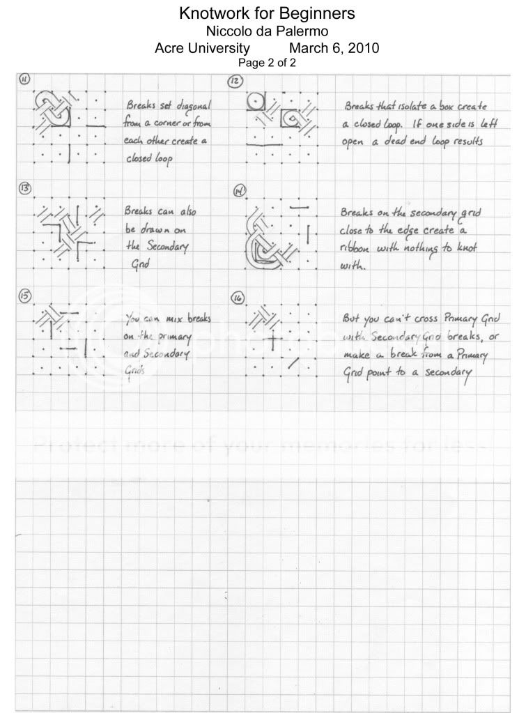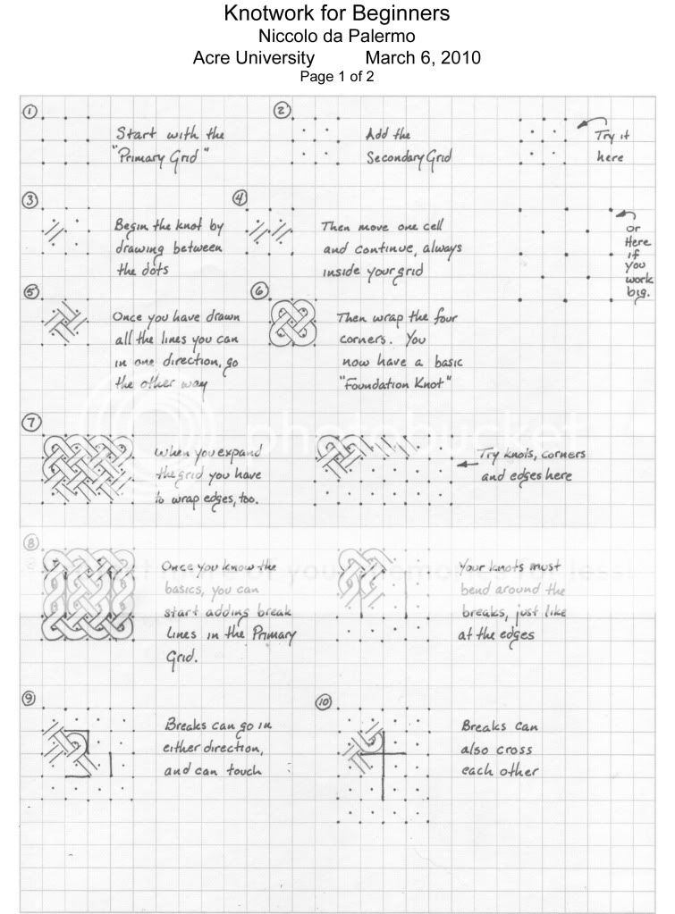 I don't know where you are getting your knotwork designs - whether they are from a pattern you researched or whether you are creating your own. In case you want to create your own patterns, but do not know how: I teach a class on the subject of knotwork design. The handout from the class is a two-page worksheet that teaches the principles and works you up from simple to more complex designs. You can download the worksheets by clicking the thumbnails below: